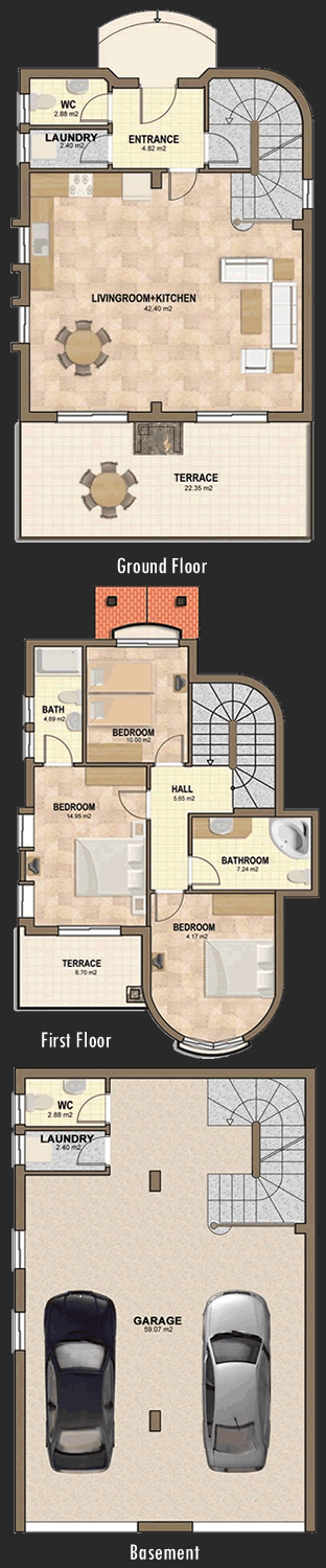 terraces and balconies.